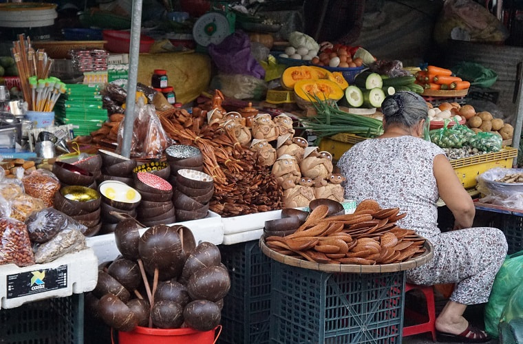 The main market covers a few blocks near the waterfront (GPS: 15.87682,108.33128). The personality of this markets shifts constantly throughout the day. In the morning only the fresh food areas are open and it is bustling with locals out doing their shopping.