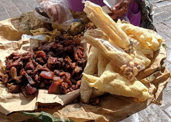 - Chicharrones – Fried chunks of pork fat. These can be a tasty snack when it is fresh but turns inedible quickly. If you buy this from a street vendor, make sure it is hot. They will often offer roasted corn with it, but this is generally a way to give you less.